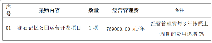 76.9万/年!澜石记忆公园运营中标结果出炉