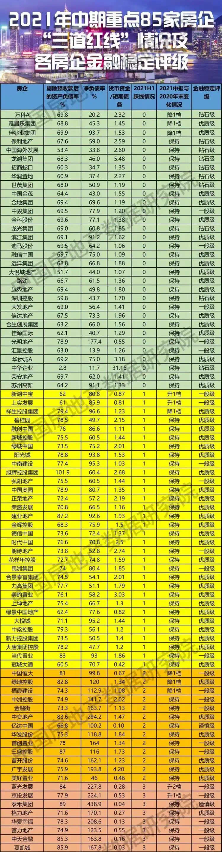 这里附赠一份房企的三道红线情况及金融评级表,希望能帮助在买房时有效避雷~