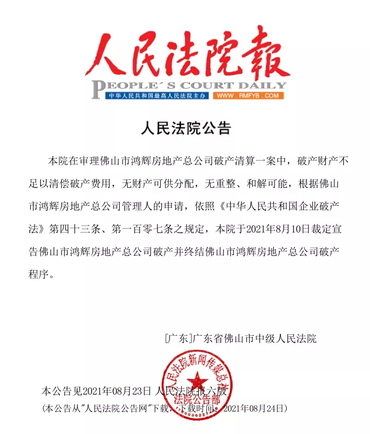 曾与恒大齐名!又一粤系老牌房企宣布破产!