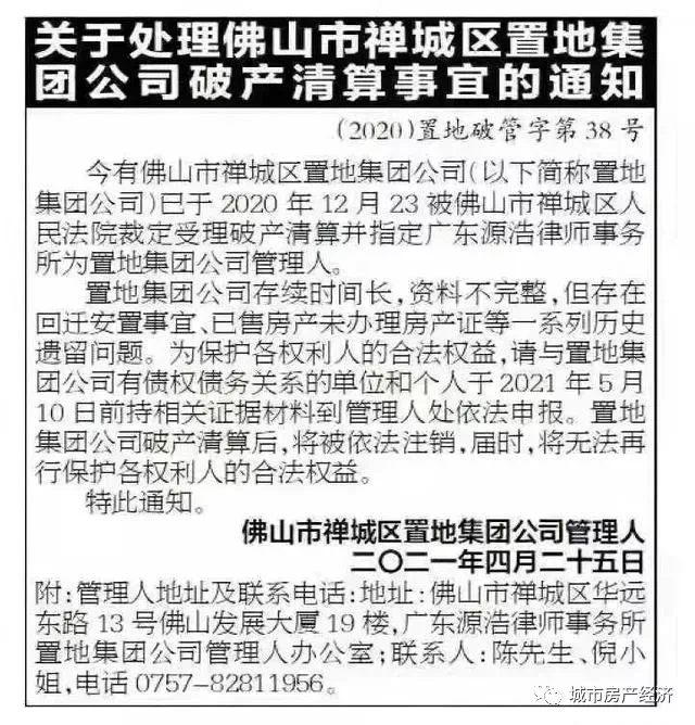 还有在佛山开发有逸彩状元坊等商业项目的本土老牌房企——置地集团,也于去年也正式宣告终结。