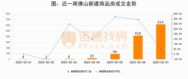 【佛山成交日报】02月07日新房成交614套、二手房360套;涨价房源1套