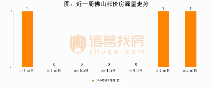 根据诸葛找房数据显示,佛山24小时涨价房源量为1套,较02月06日持平。