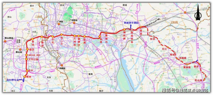 根据最新线路图,佛山已经取消澜石二路和海八路站,广州段则减少2座换乘站。