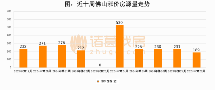 从调价房源来看,第28周佛山涨价房源189套,较上周下降18.2%。与此同时,28周涨价房源占比回落1.05个百分点,业主信心小幅波动,购房者可则需入市。