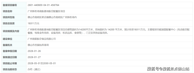 近日,广州新机场南航基地航空配餐区项目正式通过备案,总投资约1.83亿元。