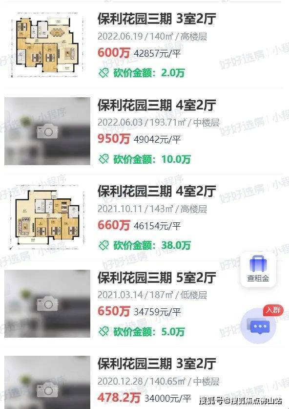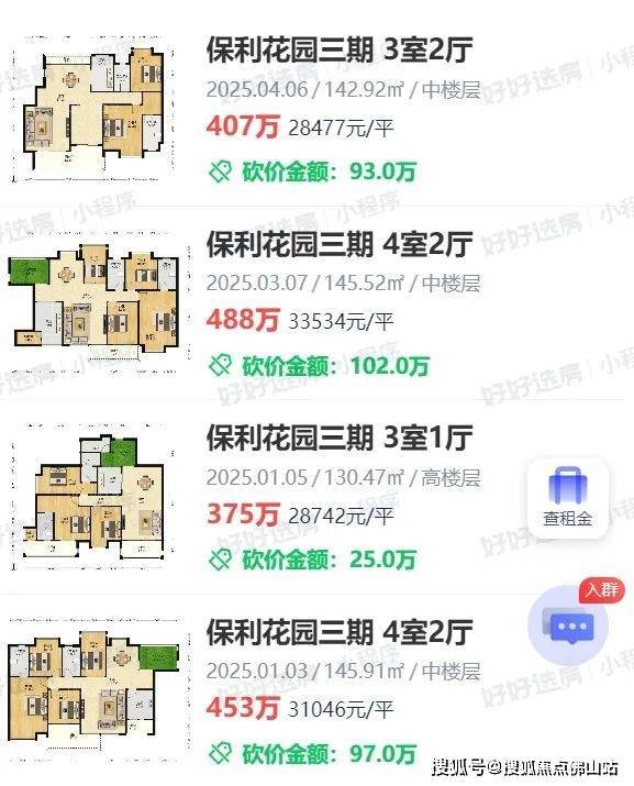 如果光看砍价幅度,保利花园一期才是最惨的。