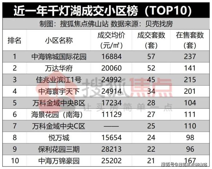 而成交量排名前三的小区,分别是中海锦城国际花园、万达华府和佳兆业滨江1号。