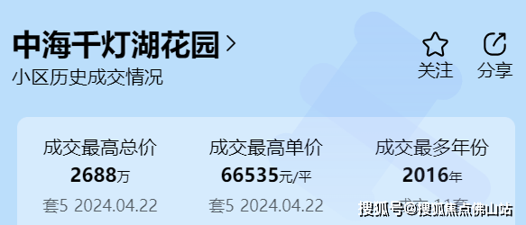 作为曾经的佛山第一豪宅,中海千灯湖花园的成交单价,已经降至3字头。