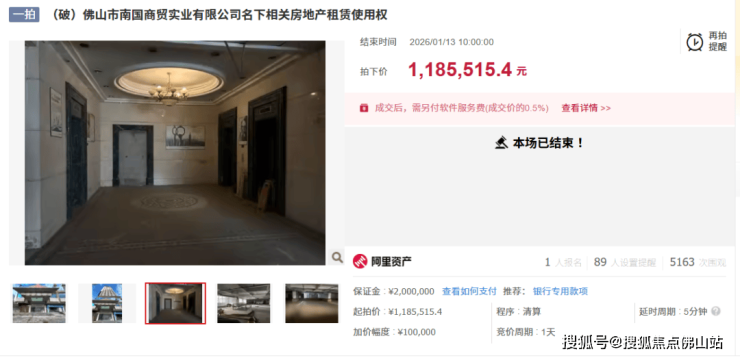 今日(1月13日),佛山南国大酒店租赁权成功拍出,成交价约118.5万/年。