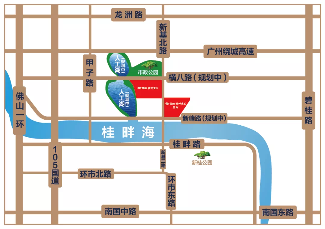 龙洲路、广州绕城高速、佛山一环、105国道等交通干道全方位联通,快捷便利,出行更自由。