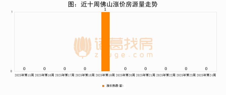 从调价房源来看,第24周佛山涨价房源0套,较上周持平。与此同时,24周涨价房源占比持平