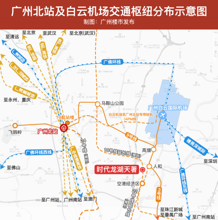 值得一提的是,除了地铁线路外,时代龙湖天著周边更规划有2大枢纽、3条城际轨道、6道高速,形成粤港澳大湾区惟一空铁联运交通模式。项目紧邻新白广城际(部分开通),可快速链接白云机场、广州北站两大枢纽,未来轻松接驳全球都会,同时连通湾区3条城际轨道,广佛环线城轨(在建)、穗莞深城轨(部分开通)以及新白广城际(部分开通),守握湾区交通主脉,快速通达湾区各大城市。
