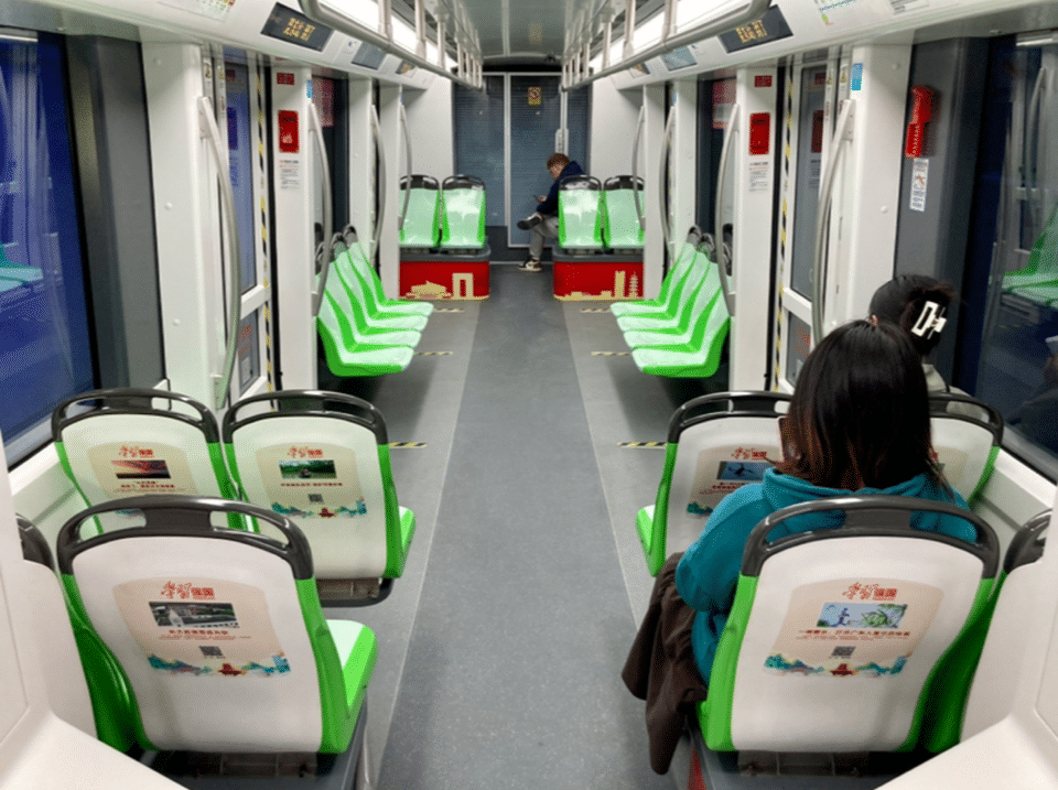 车厢内满满的学习强国元素。摄/潘汶蔚、潘伟欣