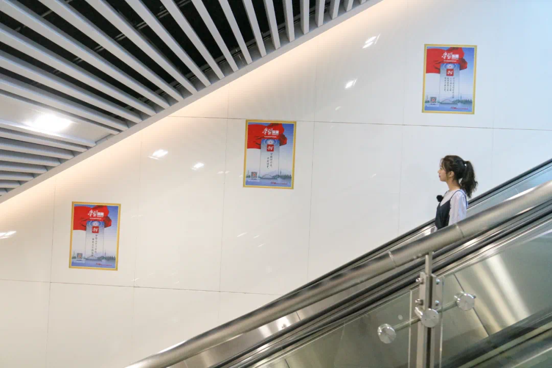 站点内的手扶挂满梯激励人心的海报。摄/潘汶蔚