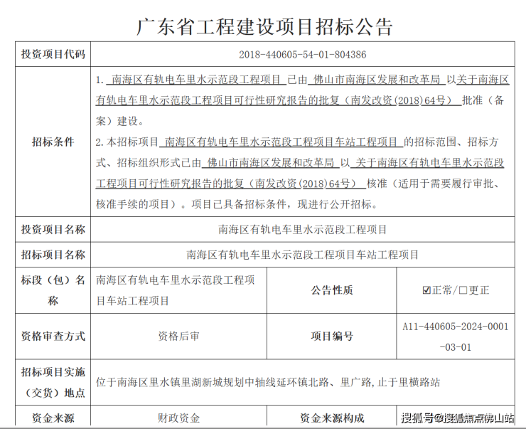 近日,广东省公共资源交易平台发布《南海区有轨电车里水示范段工程项目车站工程项目招标公告》。