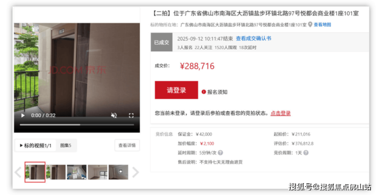 9月12日,佳兆业悦都会的36套商业资产(含办公室、公寓、商铺)结束拍卖,其中有20套成功拍出。