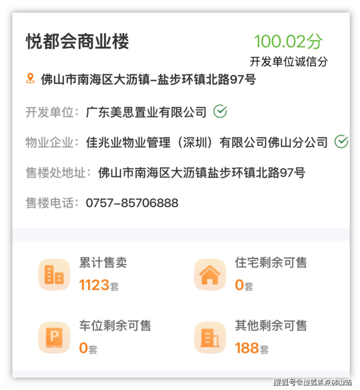 佛山房产信息网显示,佳兆业悦都会有208套商品房可售。