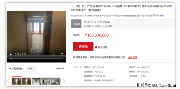 小狐翻阅资料发现,南海区人民法院曾于去年将佳兆业悦都会2座的208套不动产打包拍卖,起拍价约1.85亿。