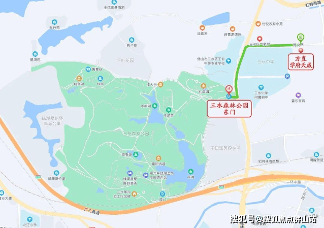 哇塞!项目和三水森林公园之间的距离只隔了个「三水中学」!