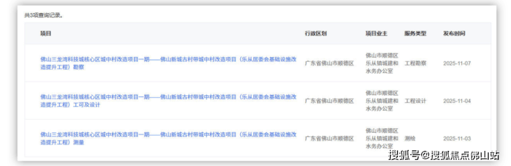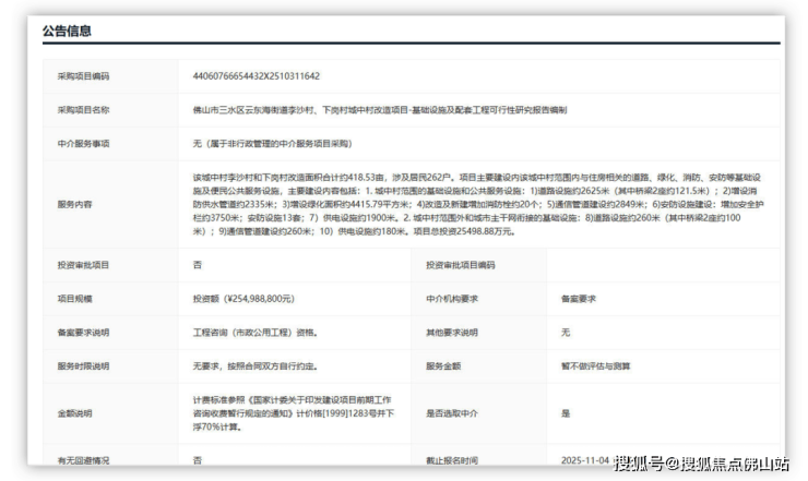 除横涌村外,李沙村、下岗村城中村改造也开启招标,事关基础设施及配套工程可行性研究报告编制。
