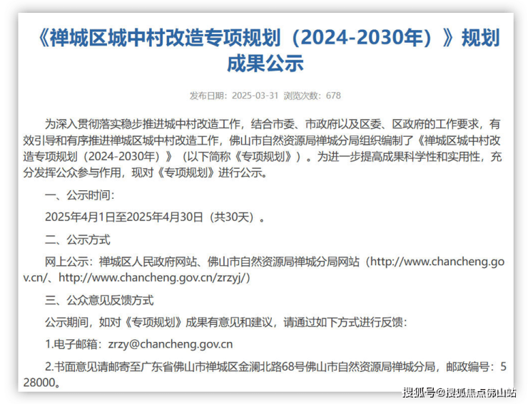 年初,佛山市自然资源局发布了《禅城区城中村改造专项规划(2024-2030年)》的规划成果公示,划定包含贺丰村、郊边村等在内的42条城中村参与改造。