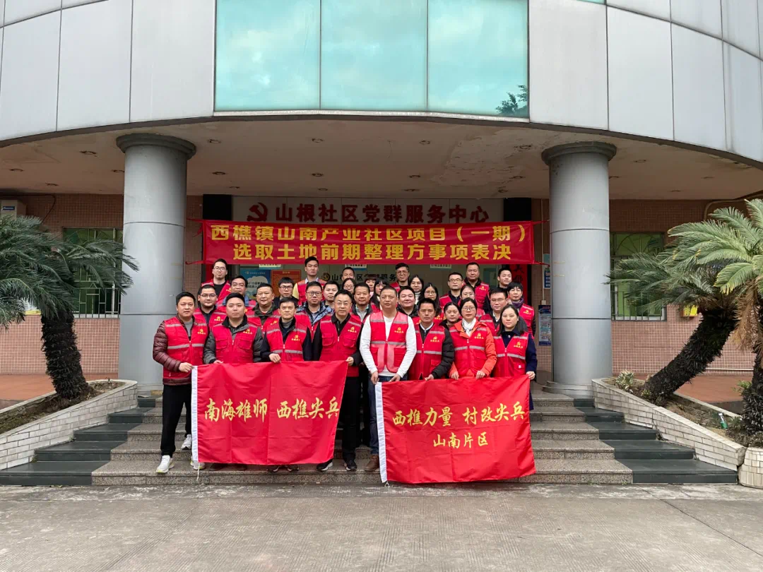 西樵尖兵出队,助力山南产业社区项目一期完成选取土地前期整理方和土地前期整理方案表决工作。