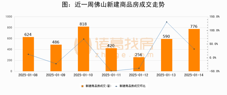 【佛山成交日报】01月14日新房成交776套、二手房606套;涨价房源1套