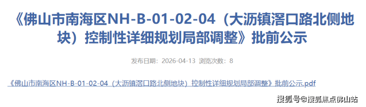 近日,《佛山市南海区NH-B-01-02-04(大沥镇滘口路北侧地块)控制性详细规划局部调整》批前公示正式发布。