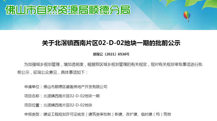 近日,佛山市自然资源局顺德分局网站批前公示,碧桂园北滘新项目将建拟建7栋高层和8栋多层住宅,规划房源878套。