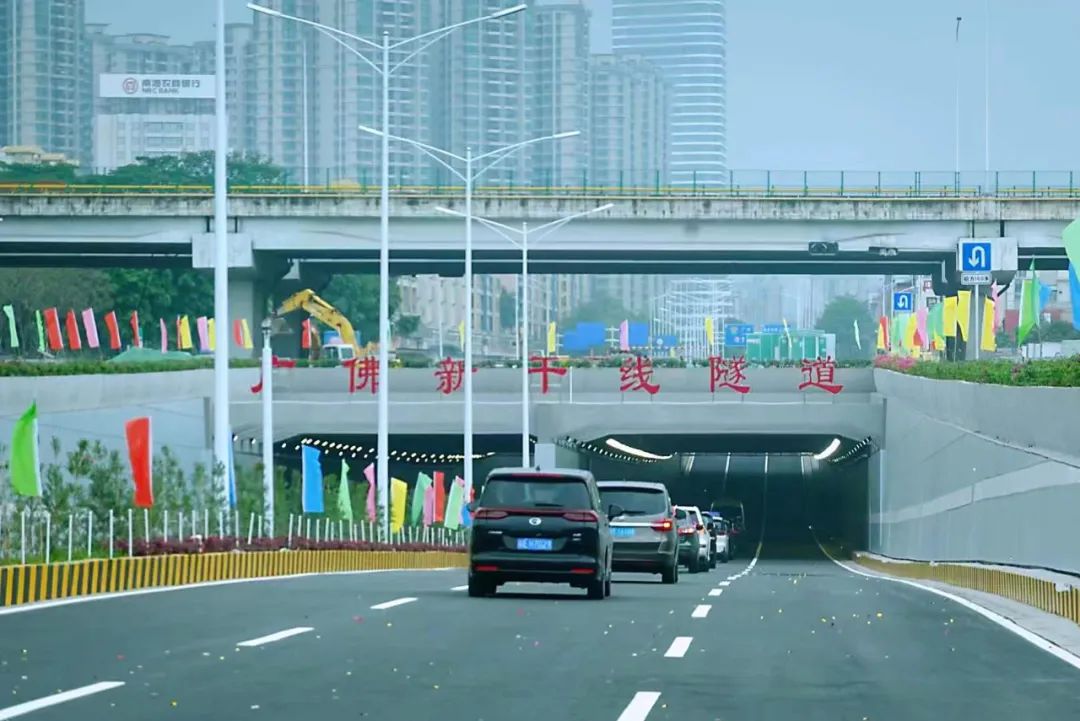 广佛新干线佛山一环隧道工程主线即日起通车。广佛新干线佛山一环隧道工程主线起点:位于广佛江珠高速(原佛山一环)与广佛新干线交叉口以西约520米处,下穿广佛江珠高速(原佛山一环)跨线桥向东延伸。终点:与大沥镇盐步大道跨线桥引道相接。道路设计:改造道路主线总长1210m,双向六车道,设计车速为80km/h;辅道总长1060m,双向四车道,设计车速为40km/h;新建隧道长635m。项目总投资:约4.05亿元。
