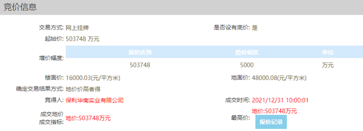 12月31日,保利华南底价50.37亿元斩获桂城夏南准湖景超10万㎡靓地,扣配建(1所幼儿园+小学)后,折合楼面价约17663元/㎡。
