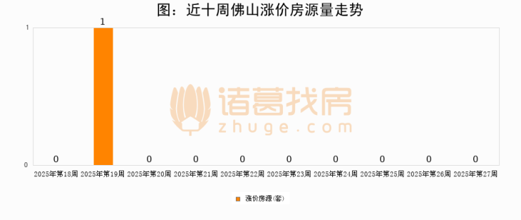 从调价房源来看,第27周佛山涨价房源0套,较上周持平。与此同时,27周涨价房源占比持平