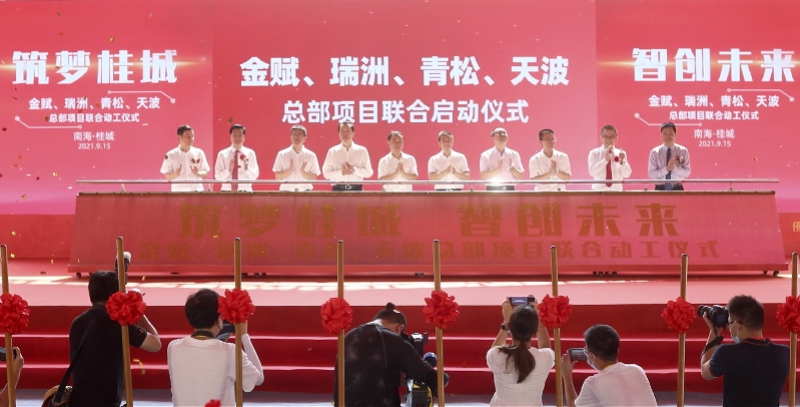 南海桂城总部经济版图不断扩大。继8月联东U谷·桂城总部经济港项目、星中创·夏南二产业中心项目动工后,9月15日上午,广东金赋科技股份有限公司、广东瑞洲科技有限公司、佛山市青松科技股份有限公司、广东天波信息技术股份有限公司等4个总部项目在桂城联合动工 。这4个总部项目位于桂城街道映月湖片区与怡海湖鲲鹏科创区交汇处,这里是桂城的未来发展的重要战略方向。项目均聚焦“智慧”和“智能”方向,建成投用后,预计将吸引超5000名人才集聚。