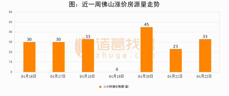 根据诸葛找房数据显示,佛山24小时涨价房源量为33套,较04月21日增加10套,环比上涨43.5%。与此同时,涨价房源占比小幅扩大,业主信心有所提升。