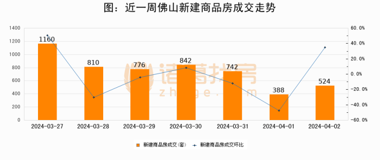 【佛山成交日报】04月02日新房成交524套、二手房556套;涨价房源29套