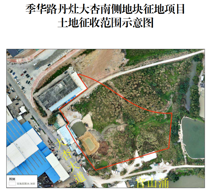 公告显示,地块位于大杏大道南侧,距离官山涌约30米;用途为用于季华路丹灶大杏南侧地块征地项目建设。