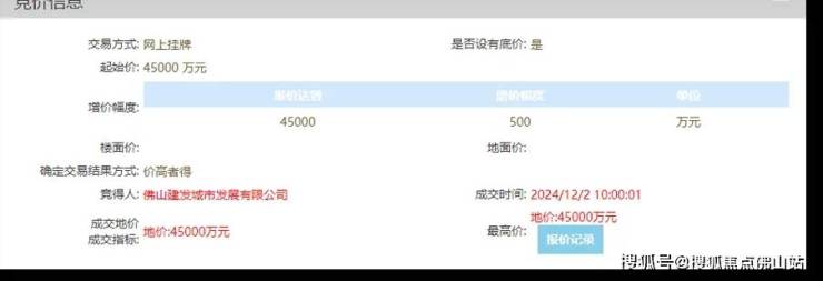12月2日,佛山建发城市发展有限公司 以总价4.5亿元 摘下张槎花曼丽舍旁地块,折合楼面价6095元/㎡ 。