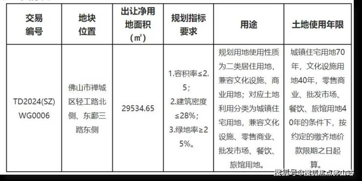 在11月1日,禅城挂牌一宗轻工路北侧、东鄱三路东侧地块,占地面积29534.65㎡,起拍总价4.5亿元,折合起楼面价6095元/㎡ 。