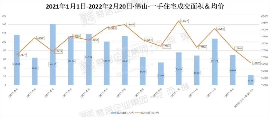 据克而瑞数据显示,截至今年2月20日,佛山全市一手房网签成交92.25万㎡,同比下滑38%;全市网签均价为1.7万/㎡,较去年年末下降约1700元/㎡。