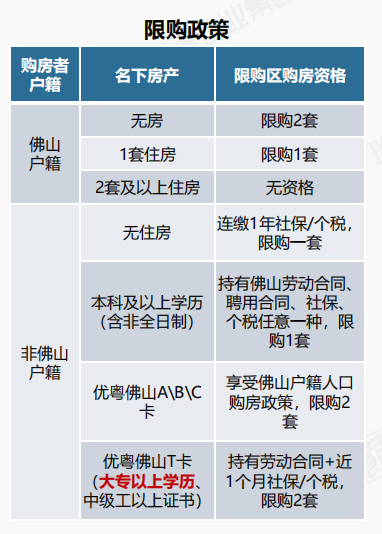 根据佛山的限购政策,在限购区内,如果是佛山户籍,2套以上住宅就无资格购买;如果是非佛山户籍,只能根据个人条件,看是否具备在限购区买房的资格。