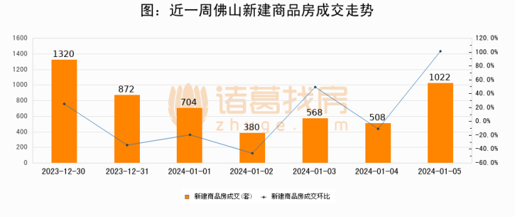 【佛山成交日报】01月05日新房成交1022套、二手房432套;涨价房源72套