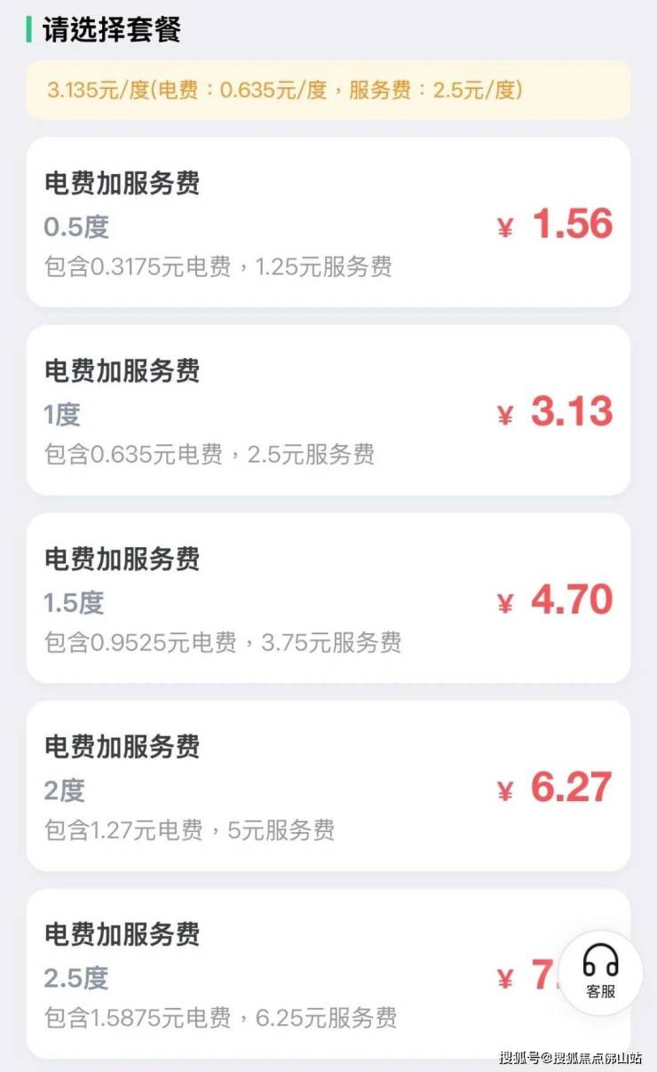 而瑞丰楼站点的电费为0.63586875元/度,服务费仅有两个档位。