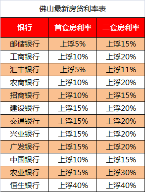 据了解目前佛山八家主流银行,一手房首套利率绝大多数在上浮10%以上,二套上浮15%-20%,更有商业银行上浮40%,看起来情况的确不太乐观。