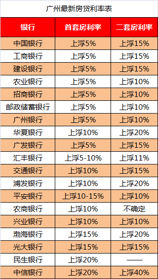在四大行的带领下,广州首套房利率普遍上浮5%,二套房上浮15%-20%。