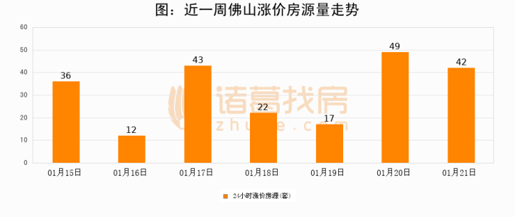 根据诸葛找房数据显示,佛山24小时涨价房源量为42套,较01月20日减少7套,环比下降14.3%。与此同时,涨价房源占比小幅回落,对于购房者来说是一个入市窗口期,购房者可抓住时机入市。
