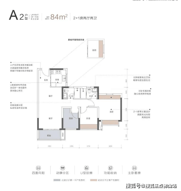 84方:四面向阳,动静分区,U型厨房,主卧套房