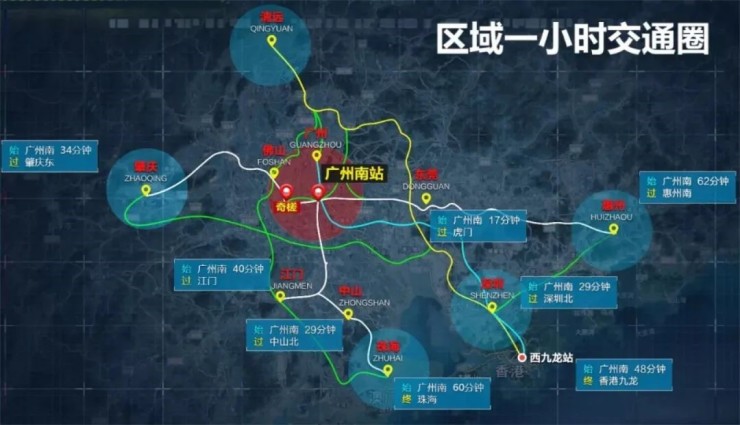 从这里出发,到佛山新城直线距离4公里,到广东金融高新区直线距离8.5公里,而到珠江新城、南沙直线距离则为20公里。