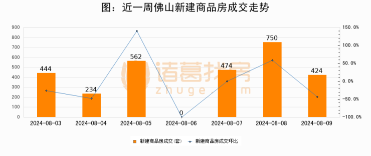 【佛山成交日报】08月09日新房成交424套、二手房696套;涨价房源30套
