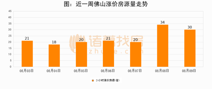 根据诸葛找房数据显示,佛山24小时涨价房源量为30套,较08月08日减少4套,环比下降11.8%。与此同时,涨价房源占比小幅回落,对于购房者来说是一个入市窗口期,购房者可抓住时机入市。