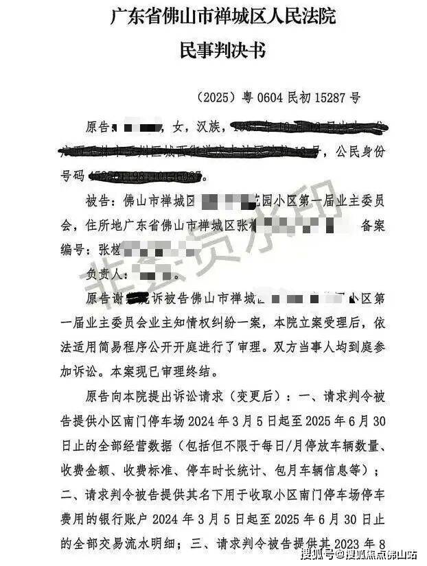 (2025)粤0604民初15287号民事判决书显示,原告起诉被告禅城某小区第一届业主委员会业主知情权纠纷一案,本院立案受理后,依法适用简易程序公开开庭进行了审理,现已审理终结。